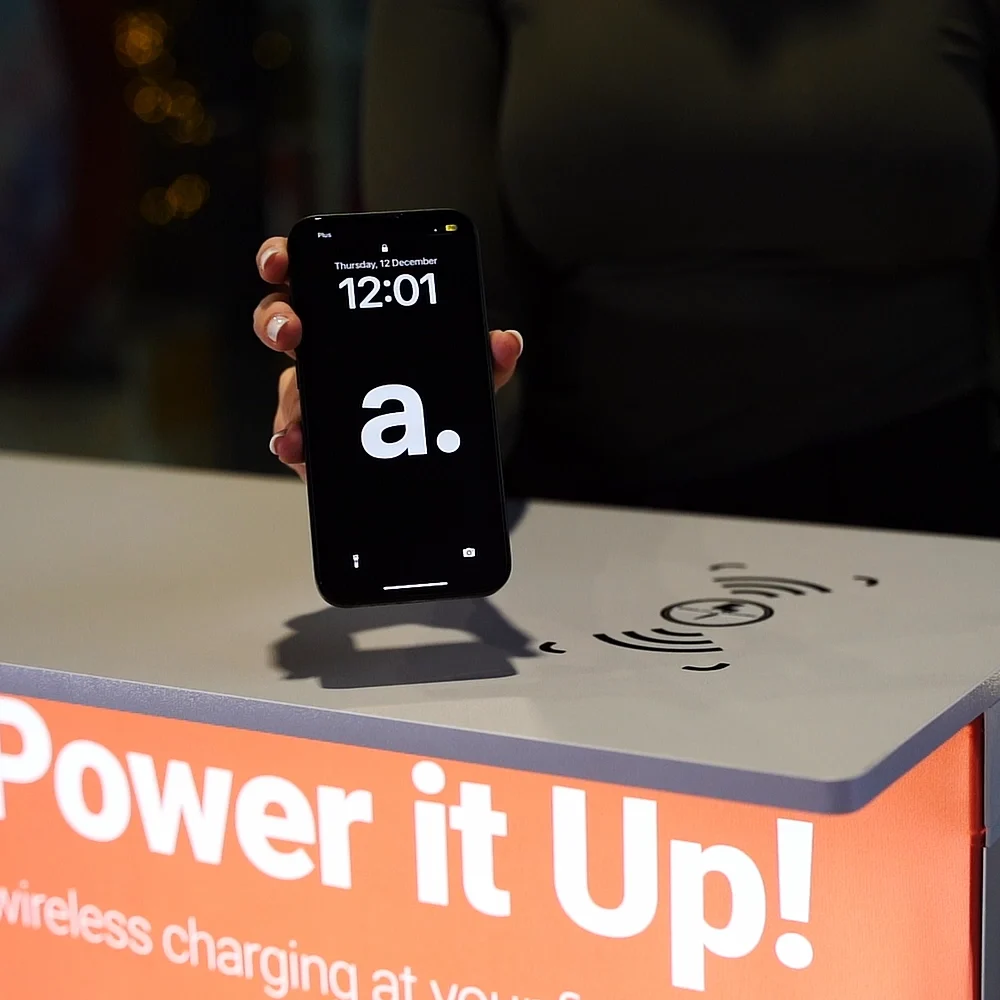 Dankzij de ergonomische hoogte fungeert de Pop-up ook uitstekend als statafel tijdens presentaties, netwerkmomenten of ontvangsten. Een statafel bedrukken met verlichte textielprint en draadloze oplading creëert een hypermoderne, uitnodigende hotspot waar bezoekers graag even blijven staan.