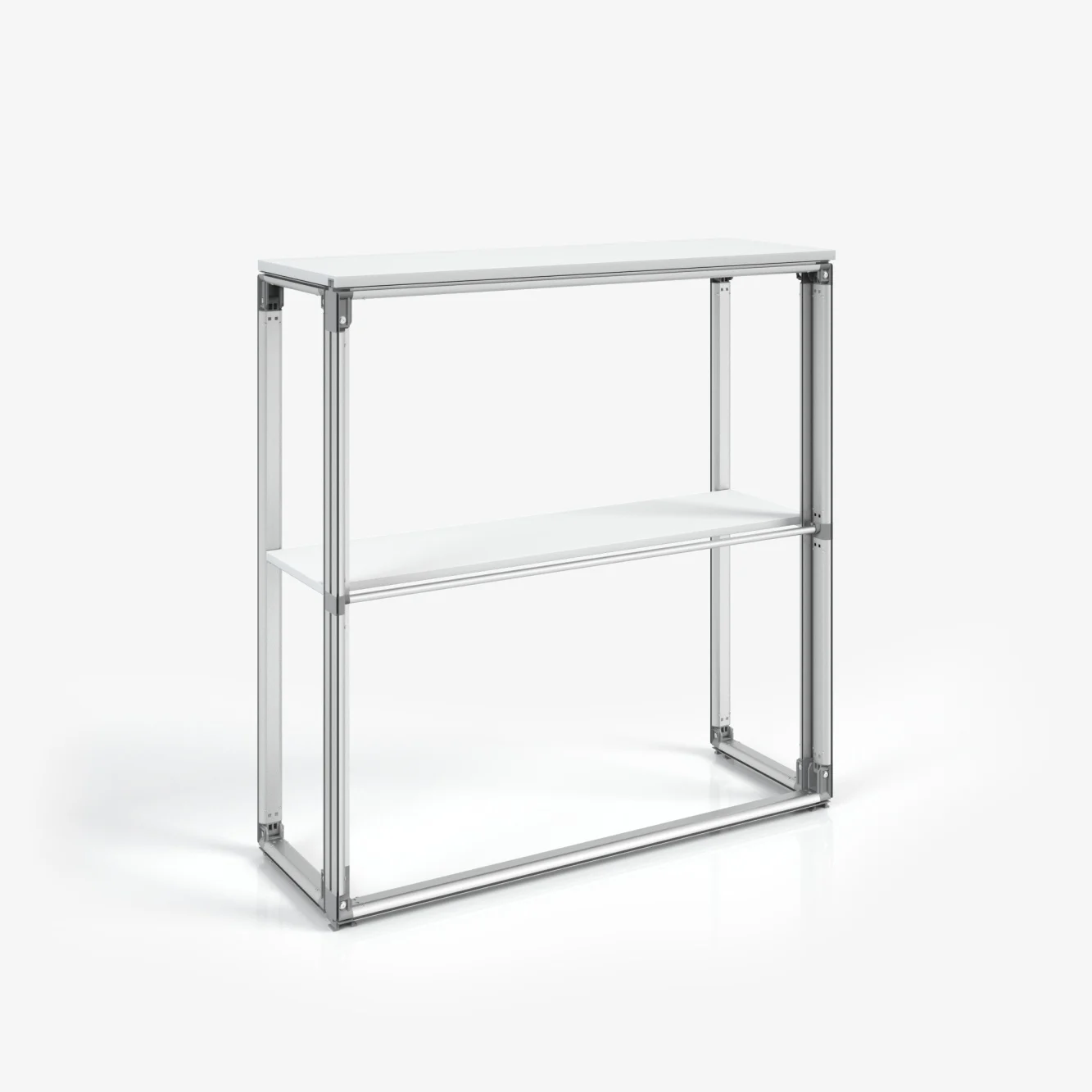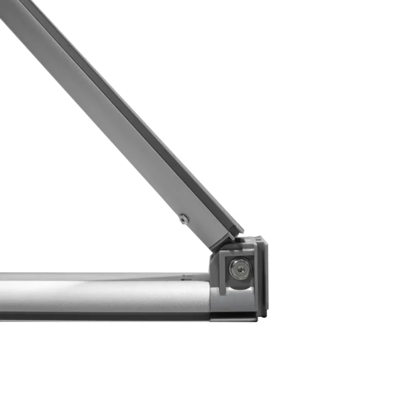 - Lichtgewicht en snel op te vouwen: Het stevige aluminium frame zorgt voor een lichte constructie die eenvoudig en intuïtief op te vouwen is. Zo zet je jouw beursbalie zonder gedoe in een handomdraai op.