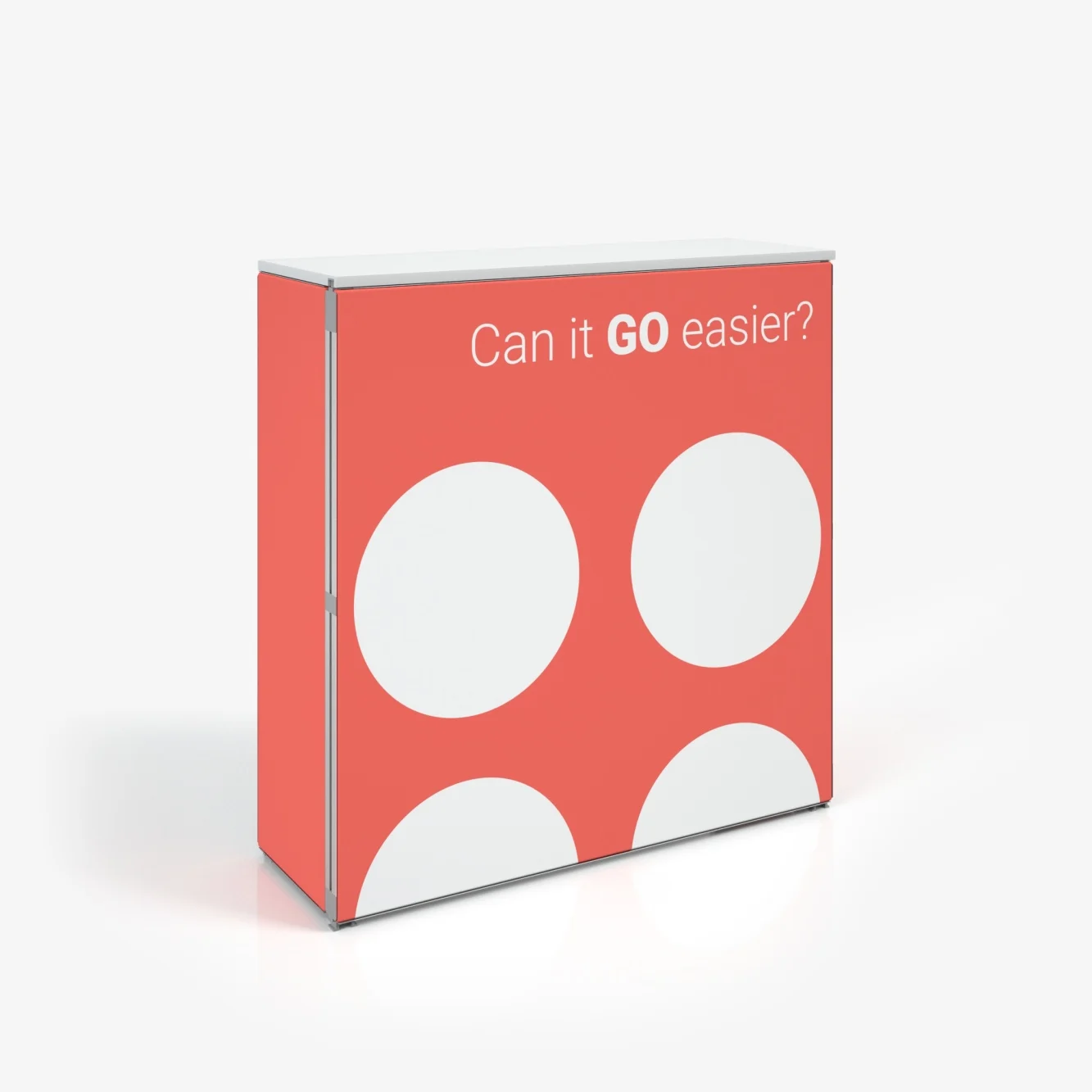 - Hoogwaardige driedelige print: De balie is voorzien van sublimatiebedrukte textielpanelen aan drie zijden. Dankzij het Silicon Edge System (SEG) zijn de prints eenvoudig te monteren en zorgen ze voor een scherpe, kleurrijke weergave van jouw merk en boodschap.
