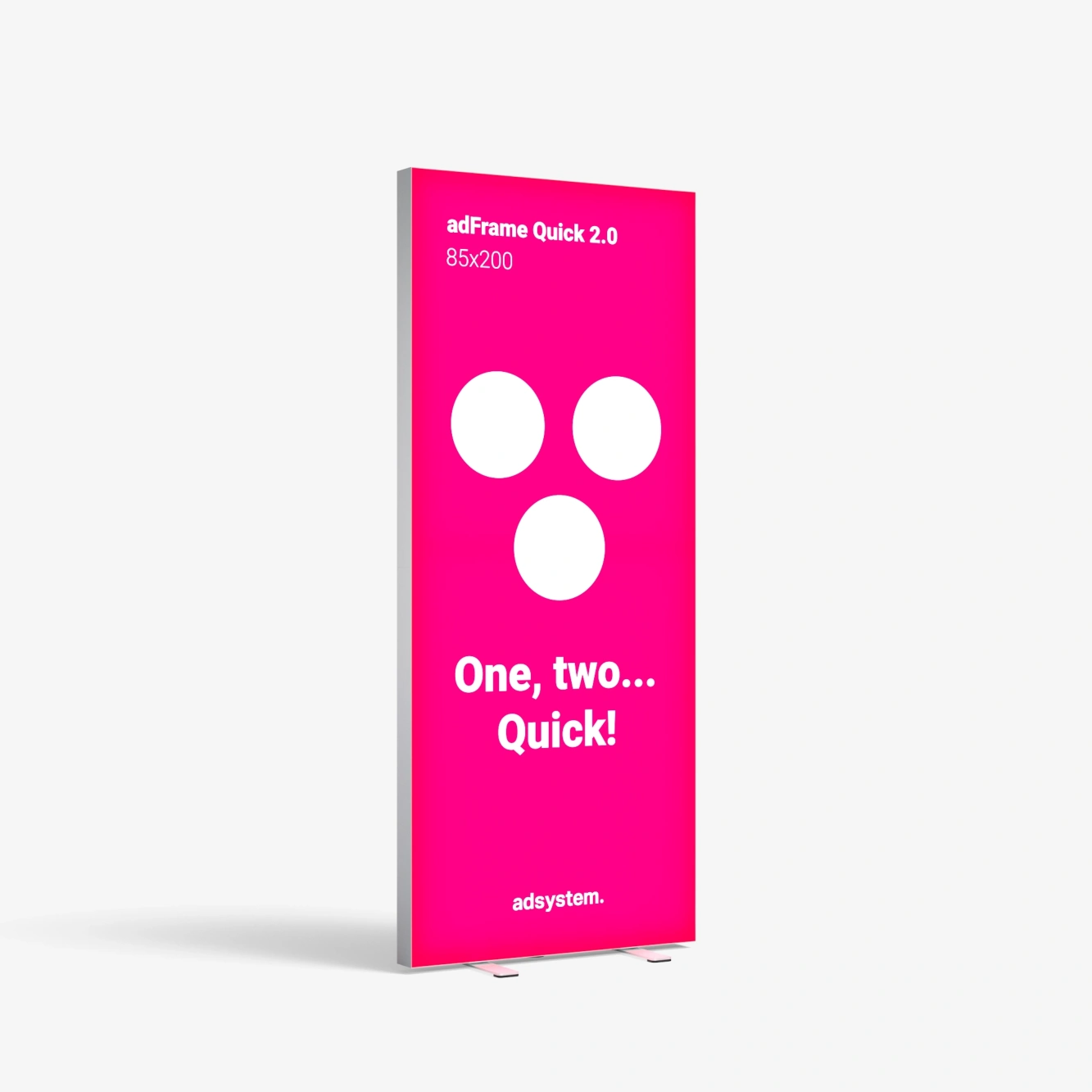 The adFrame Quick 2.0 is a freestanding LED frame and is ideal for use as an illuminated exhibition wall or presentation wall. Thanks to its lightweight aluminium construction and smart design, this frame can be assembled quickly without tools. The integrated magnets allow you to easily connect multiple LED frames to form one large stand, without the need for additional tools or accessories.