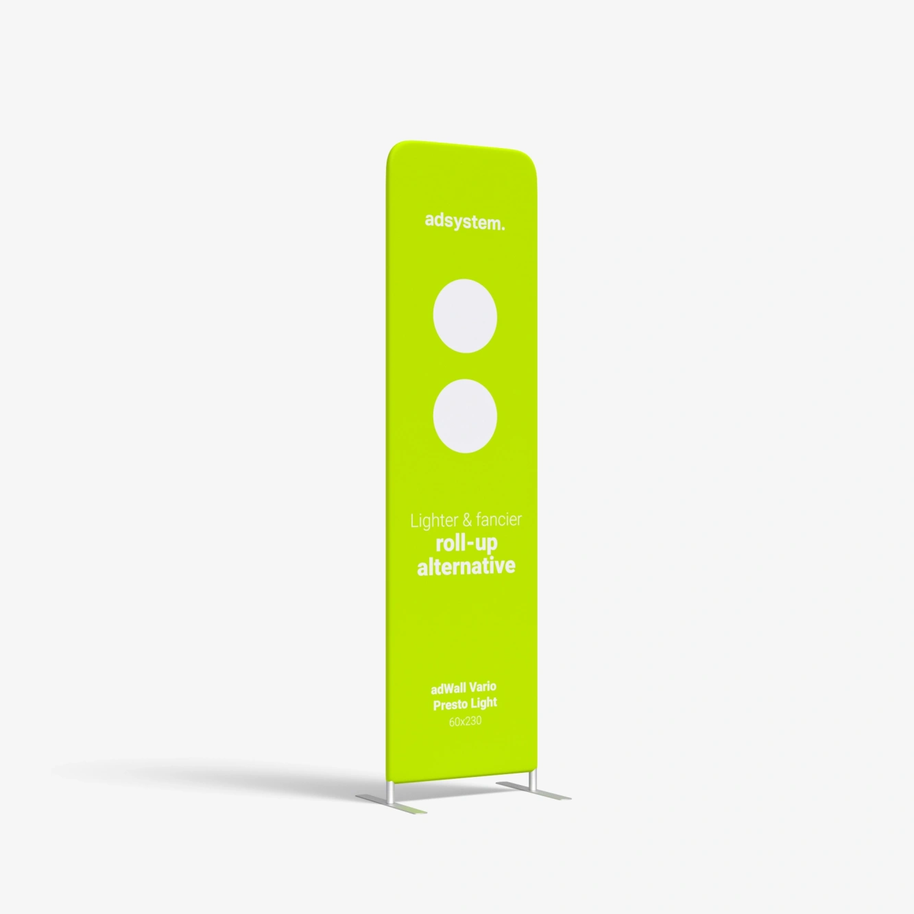 The adWall Vario Presto Light exhibition wall is a lightweight and compact presentation wall made of sturdy 34 mm diameter aluminum tubes and a printed, washable textile cover. This zippered wall can be assembled without tools and is available with single- or double-sided printing. It’s an ideal, flexible, and reusable alternative to traditional roll-ups for trade shows, promotions, and corporate events.