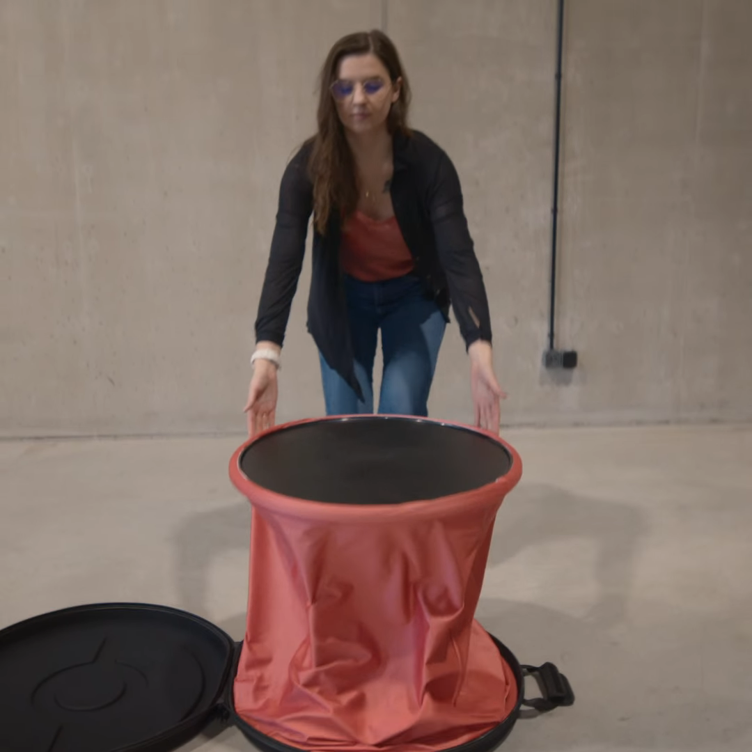 Deze beursbalie heeft een klassieke ronde vorm die van alle kanten toegankelijk is en daardoor goed werkt als centraal punt in een stand. Het pneumatische systeem zorgt ervoor dat de structuur automatisch uitklapt zodra je het blad optilt, waardoor je in zeer korte tijd klaar bent voor gebruik.
