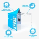 De adTent Express Pro is een geavanceerde reclametent met een sterk, verstevigd aluminium frame dat belastingen tot 100 kilogram kan dragen. Deze reclametent is snel en zonder gereedschap op te zetten en geschikt voor zowel binnen- als buitengebruik. Het waterdichte doek beschermt tegen zon, wind en regen, waardoor je merk altijd in optimale omstandigheden wordt gepresenteerd.